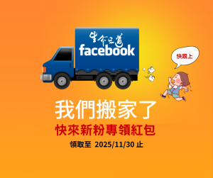 為了方便大家找到我們,繼續為大家提供更好的服務,生命之道的FB粉絲專頁搬家囉。請各位使用臉書的新朋舊友快來追蹤新粉專,以免錯過你感興趣的更新和精彩內容。我們還在新家準備了搬家紅包等候領取,直到114年11月30日止,以答謝大家一直以來的支持。即日起舊的粉絲專頁將不再更新。